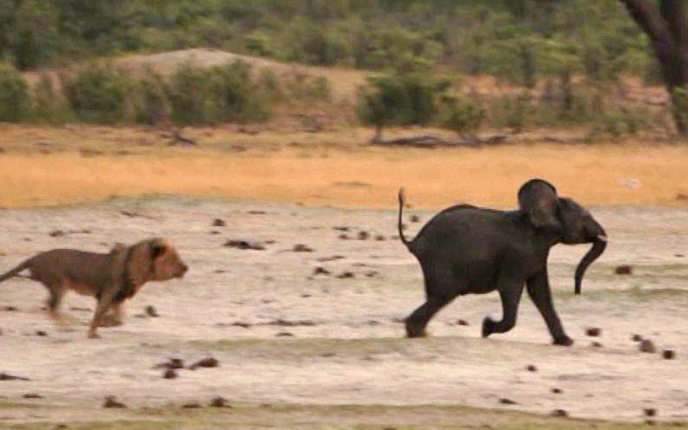 ライオンが迷子の小象を30分間追撃して噛み殺す 新華ニュース